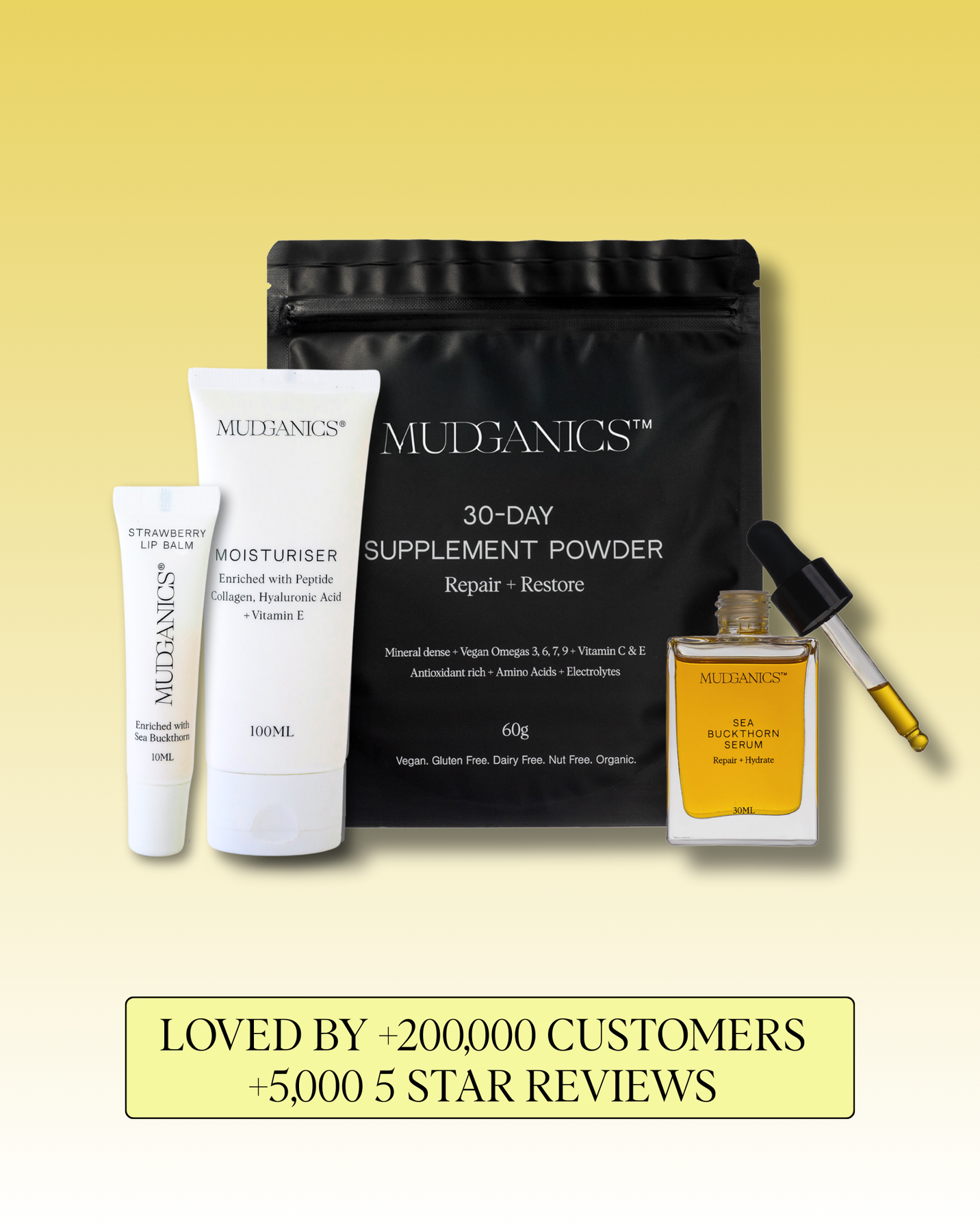 The Everyday Essential Bundle is your all-in-one solution for radiant skin and balanced wellness. Featuring our Peptide Collagen Moisturiser, Sea Buckthorn Lip Balm, 30ml Sea Buckthorn Serum, and 30-Day Detox, this bundle is infused with the powerful benefits of Sea Buckthorn in every product. Known for its rich concentration of omega fatty acids, antioxidants, and vitamins, Sea Buckthorn promotes hydration, supports collagen production, and enhances cell regeneration—giving you glowing skin and holistic wellness from the inside out.